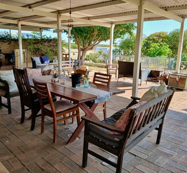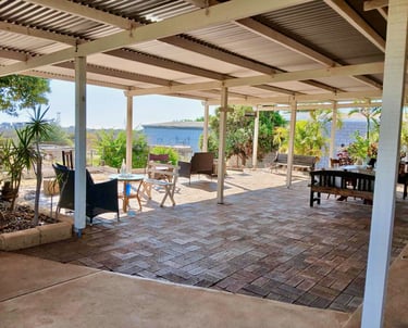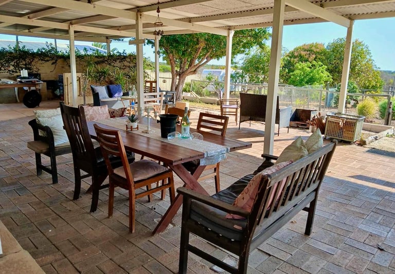 Huge covered entertaining space perfect for gatherings, capturing stunning coastal and town vistas.